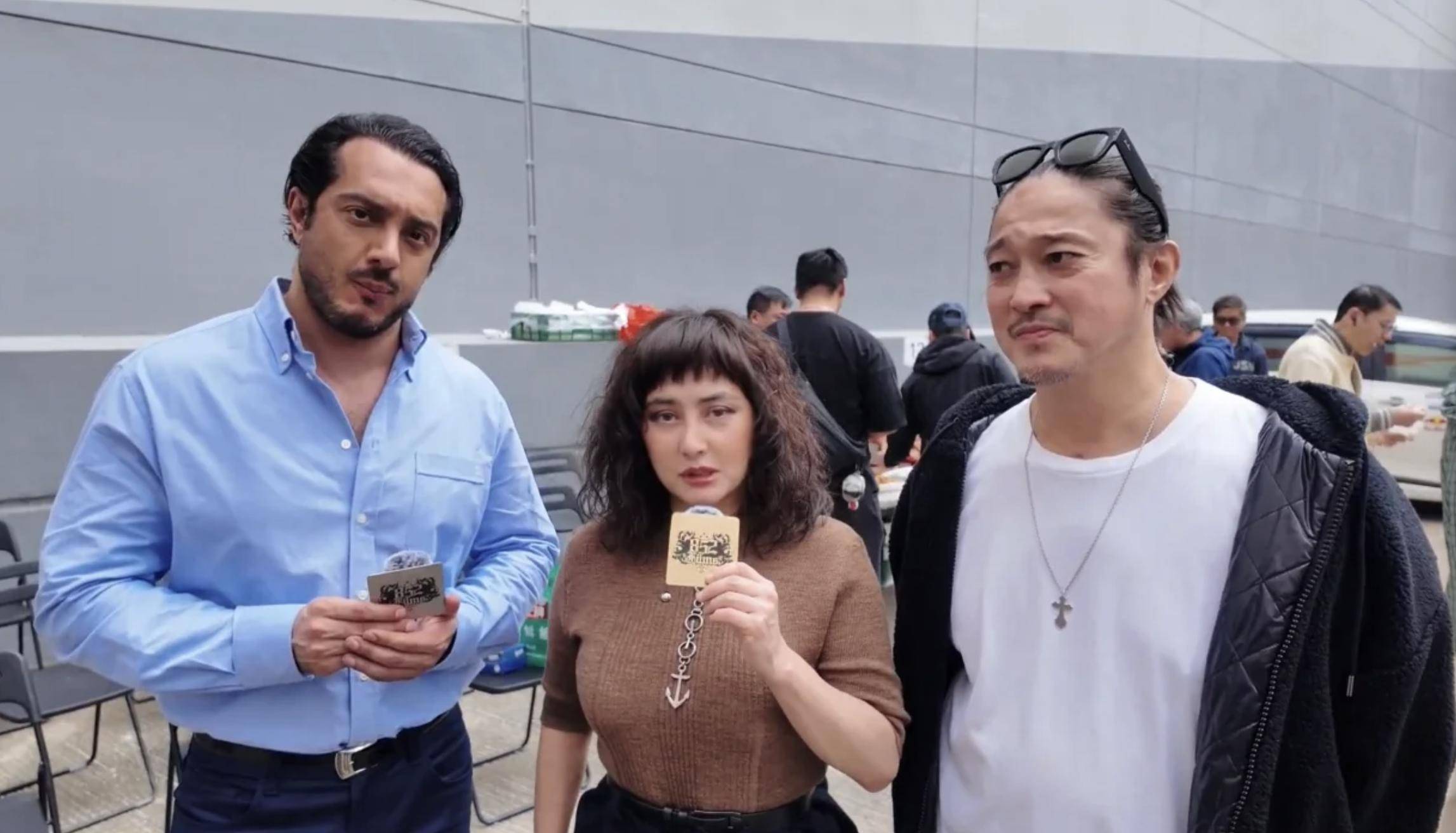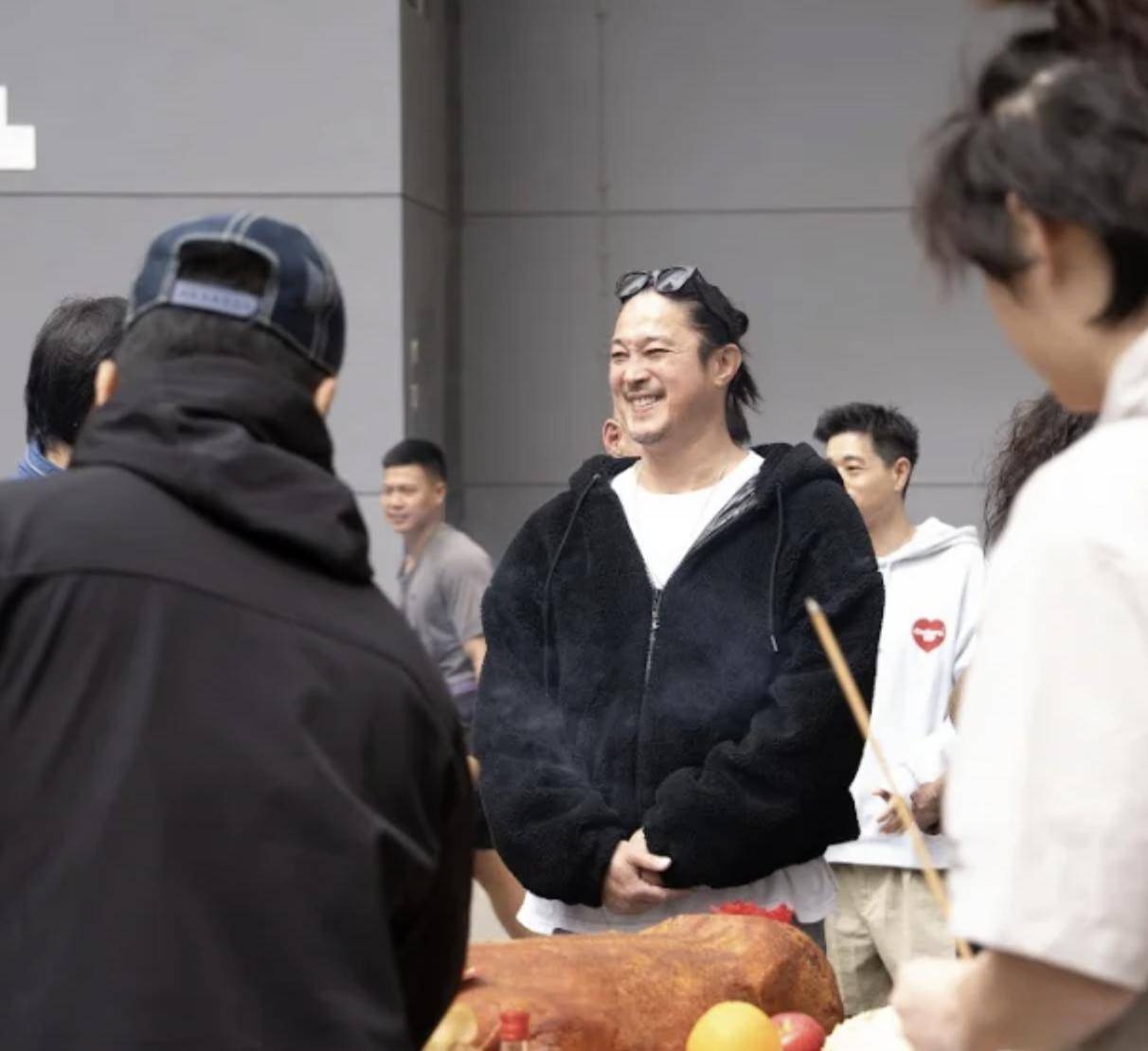 陈子聪是以电影监制的身份现身开镜仪式。许久不见陈子聪,再见到他的时候,不只是精神奕奕,而且还胖了一圈,身材又恢复了昔日的魁梧,满面红光圆润了不少。他的头发还是很长,还绑起了小辫子,又戴上了墨镜,看起来还是颇为有型。当天天气不算太冷,不过他还是穿了比较厚重的黑色外套,比起穿短袖的何超仪,他的穿着更显得厚重,毕竟也是大病初愈,还是要注意保养。