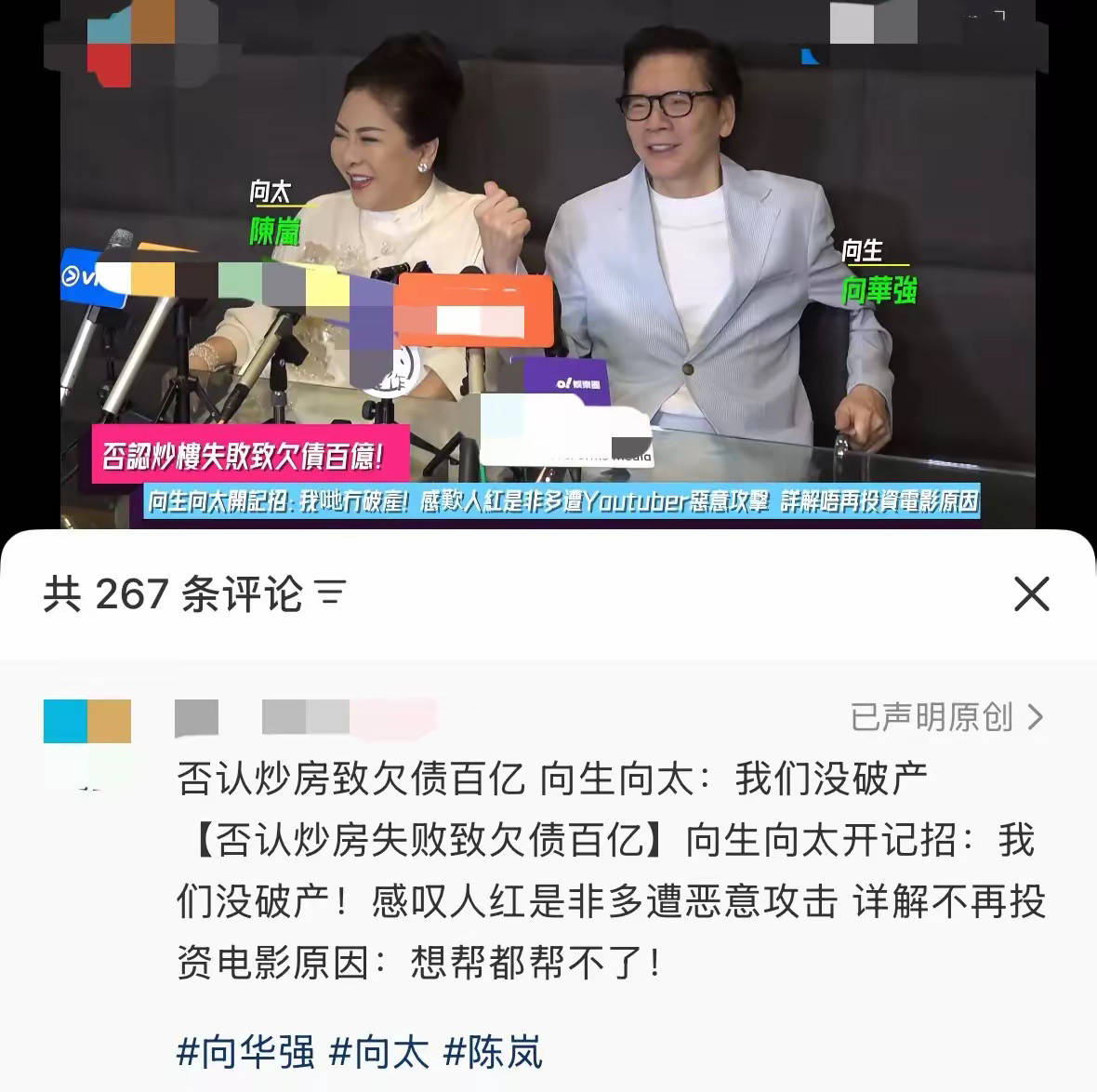 近年来,向太夫妇很少投资电影,也被圈内传出“破产传闻”。尤其是儿子穿女装卖货、向太直播间爆料明星私事,都让人觉得是在博流量。