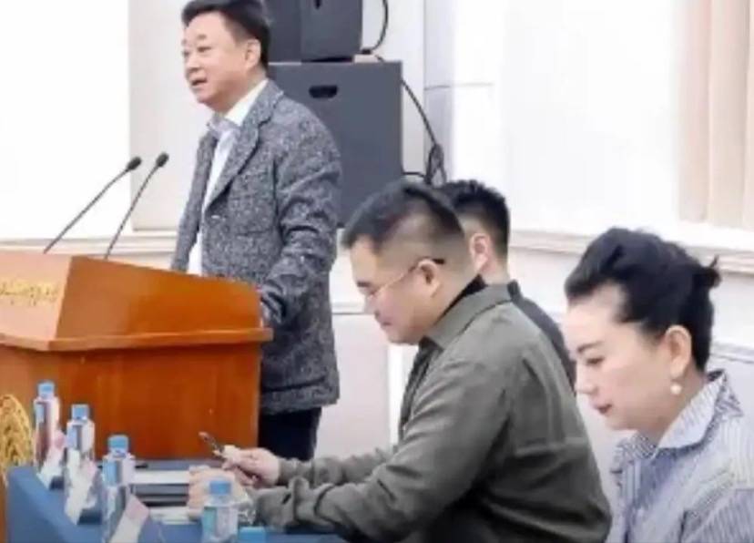 在握手的时候,朱军的大肚腩更明显的露出来。这个角度看,朱军还颇有领导的派头。毕竟是那么多年的央视名嘴了,气场还是非常强的。