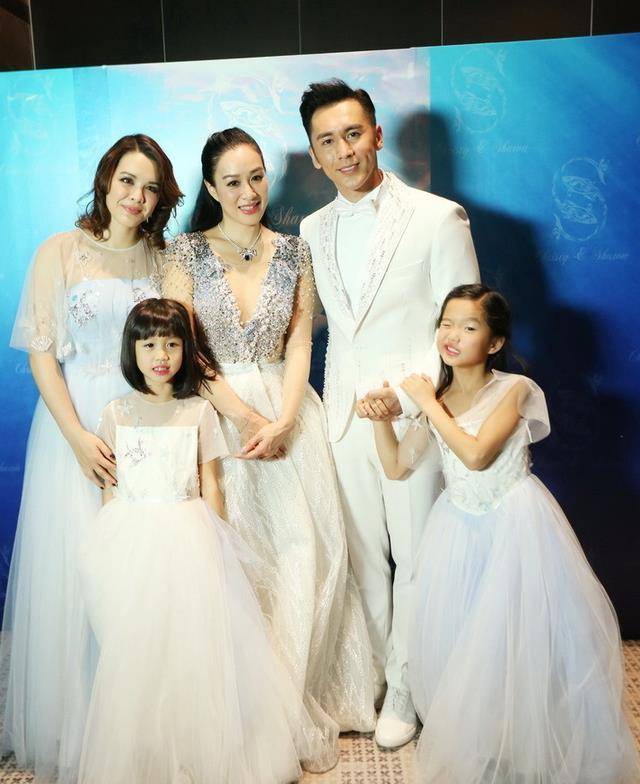 2016年11月,经历了两段婚姻的钟丽缇牵着三个女儿的手走入了婚礼现场。