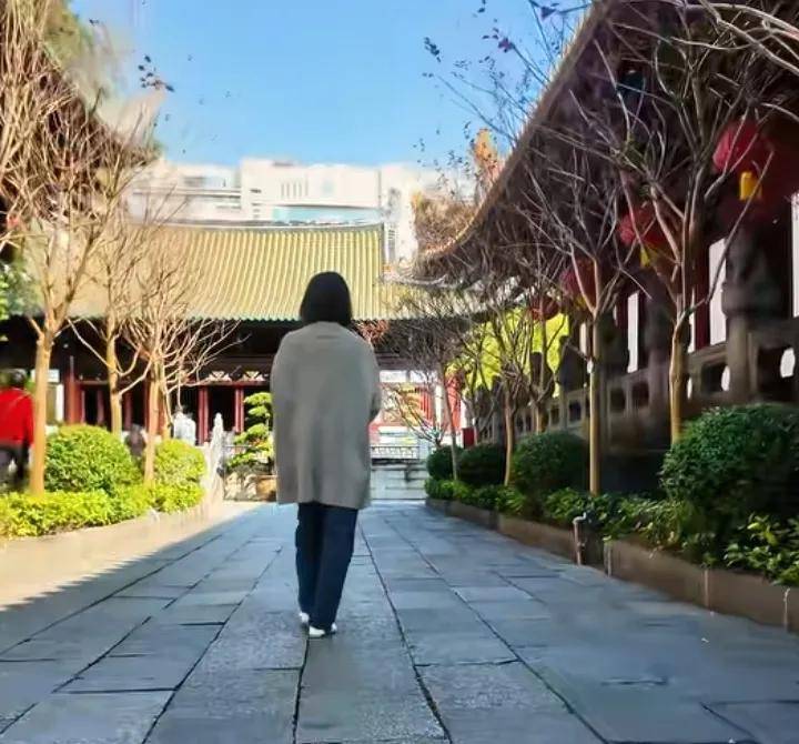 12月9日,黄慧颐独自现身光孝寺跪拜,她身着素色的毛线外套,牛仔裤,素颜,完全就是普通人的形象。