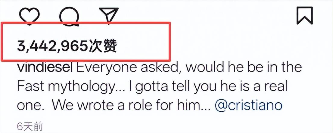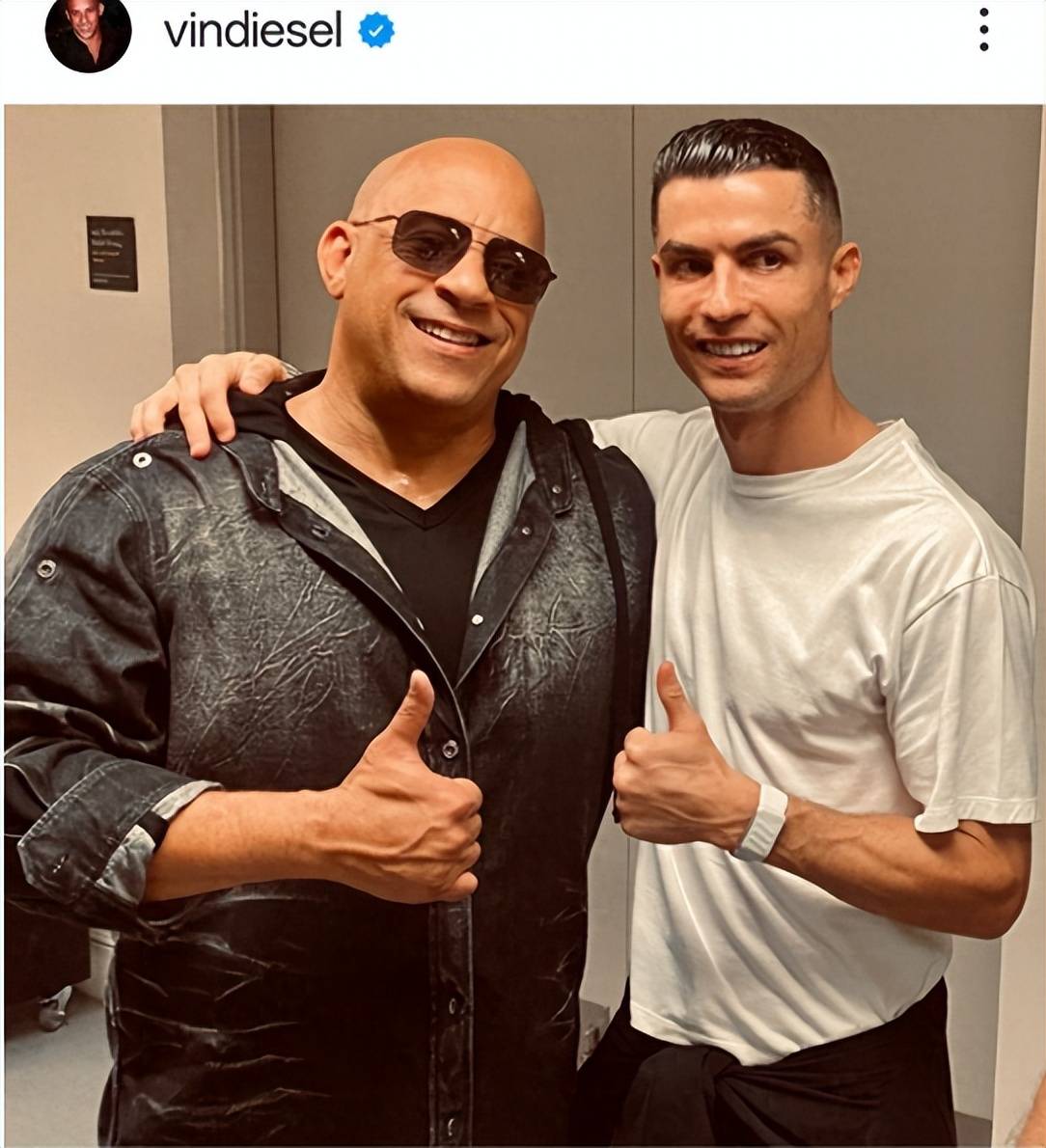 《速度与激情》系列核心主演兼制片人范・迪塞尔,在社交平台晒出与 C 罗并肩而立的合影,两人默契竖起大拇指,配文掷地有声: