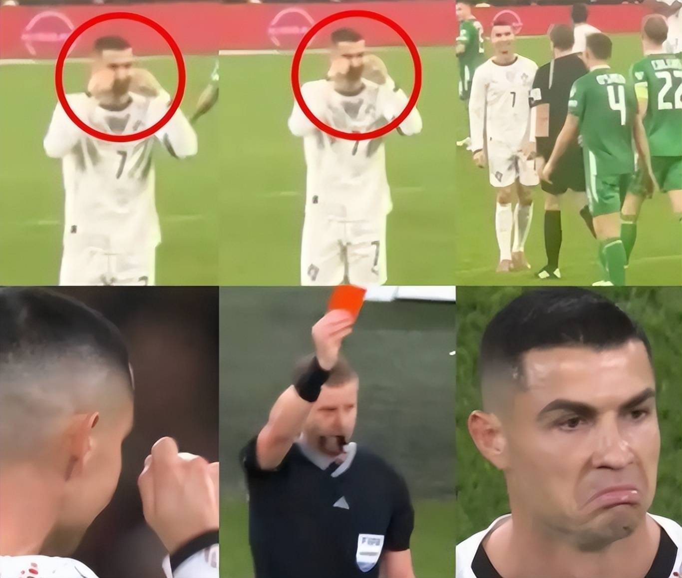 2025 年 11 月的世预赛欧洲区赛事中,C 罗在无球状态下肘击对手,被主裁判直接红牌罚下。
