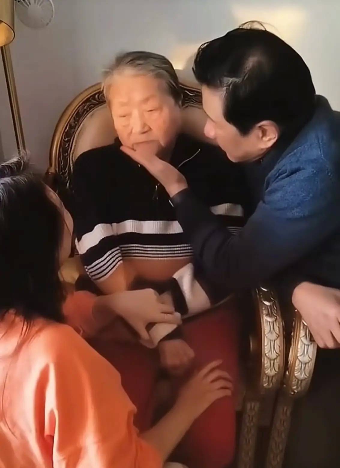 年纪大了就会特别怕冷,即便室内二十三四度,也需要穿毛衣。看着丁勇岱细心的喂母亲吃水果,就知道母子感情特别好。