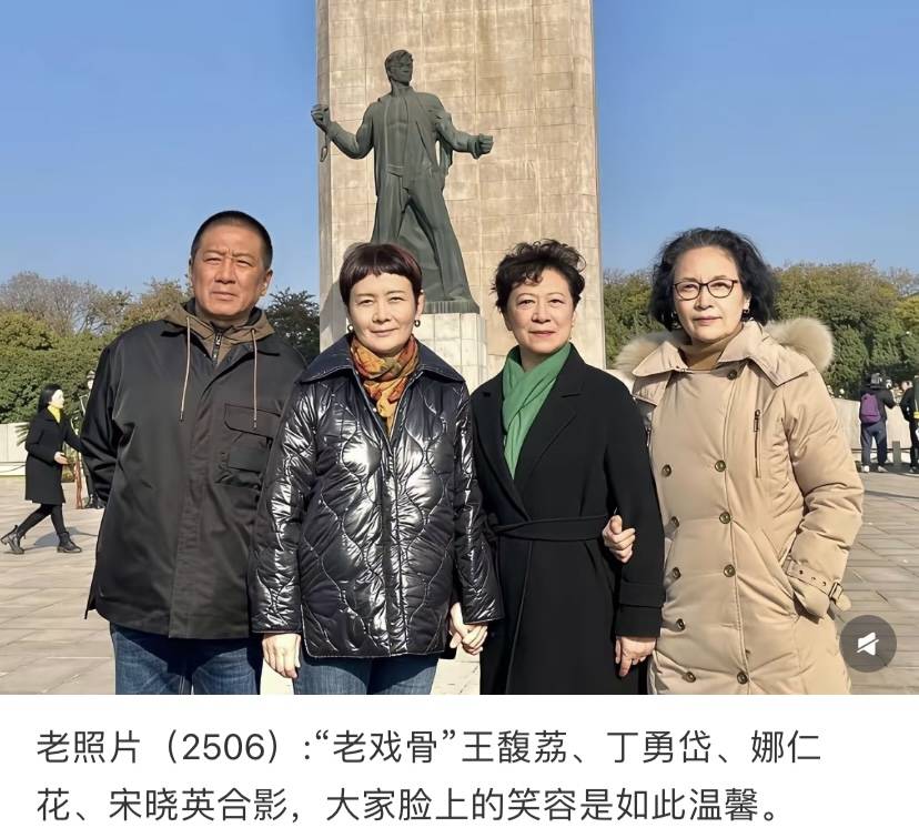 他与很多老戏骨关系都不错,和王馥荔、娜仁花、宋晓英四人合影,就像是老朋友一样亲切。