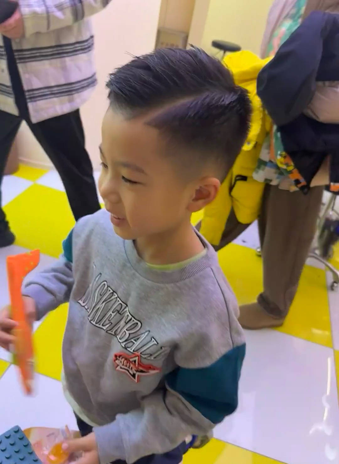 这次出现在镜头里的应该是小儿子,小儿子的新发型好帅气,为了这造型一定打了不少摩丝,真是比爸爸还要潮!