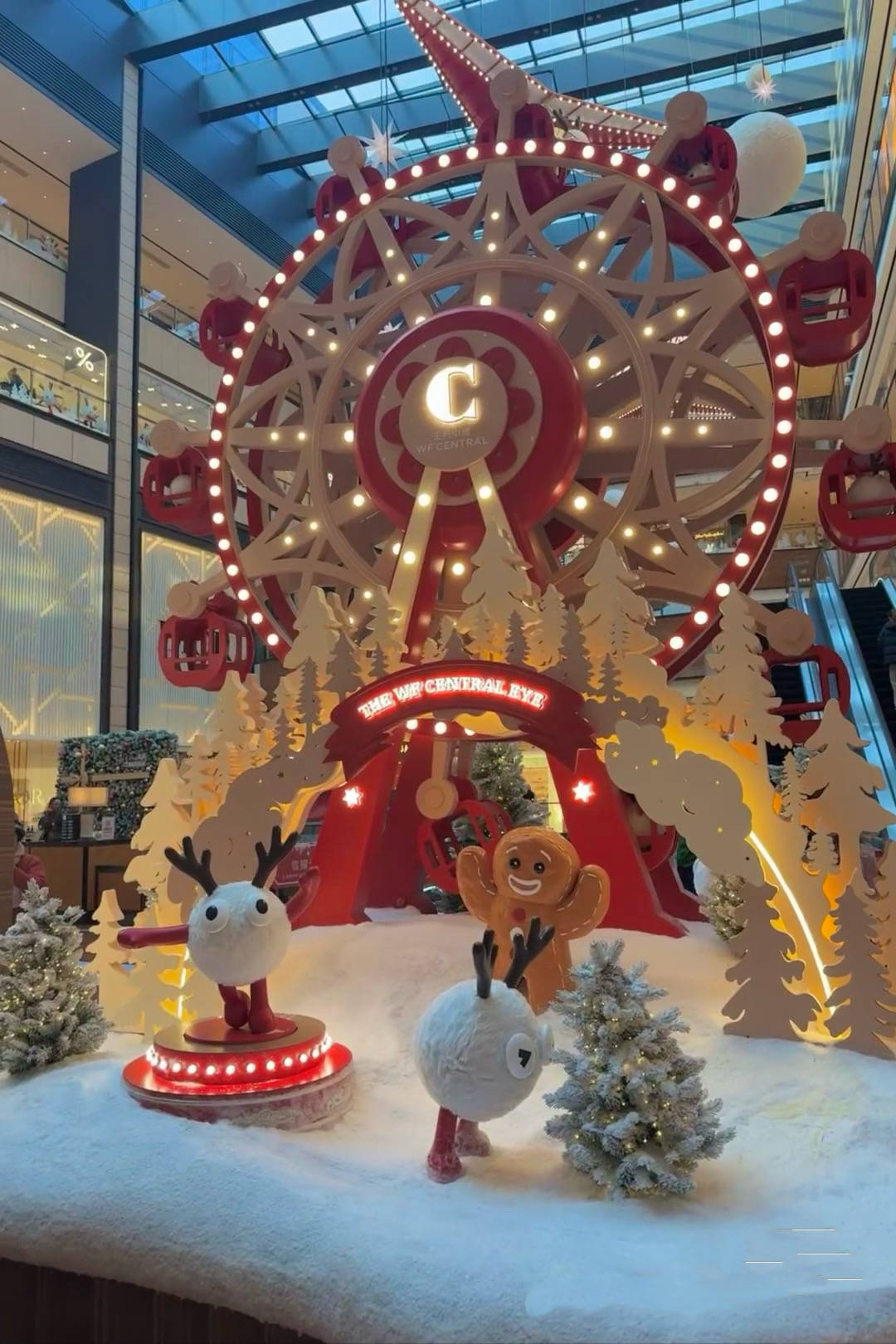 圣诞元素的摩天轮装饰,当灯光打开的那一刻,真是好浪漫。