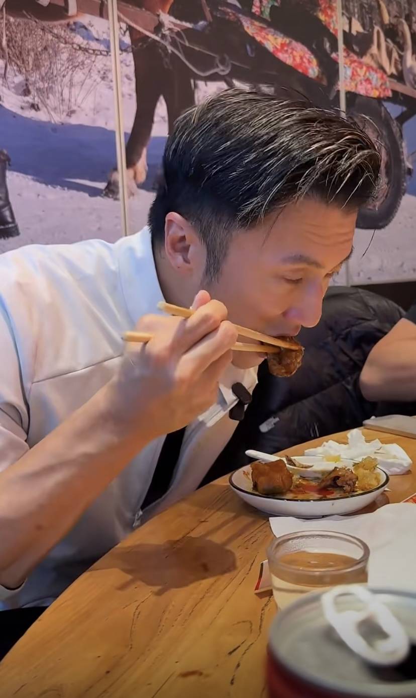 “锋味”是又要研究新产品了吗?这次谢霆锋到哈尔滨就直奔东北铁锅炖吃大鹅。那么老远、闻着味就来了!