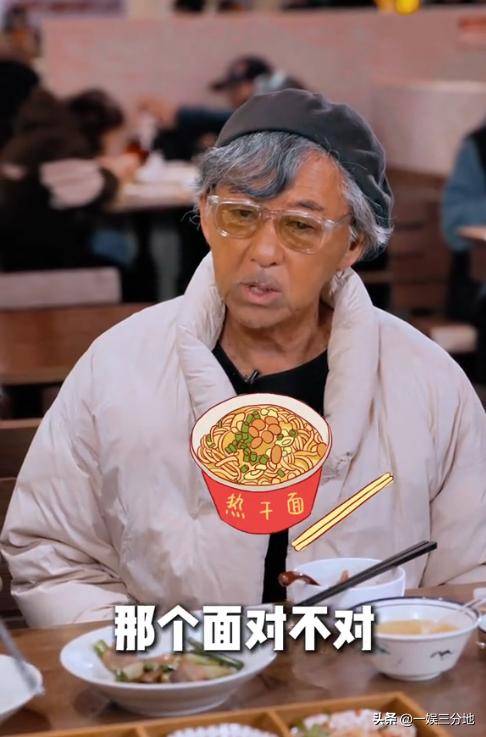 而旁边的林子祥,则是吃了一口看起来水水的汤粉。