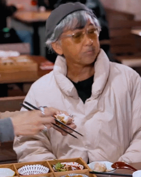 相比较起来,林子祥就会淡定很多,靠在椅子上只是眼睛盯着食物,没有过多的表情和动作。