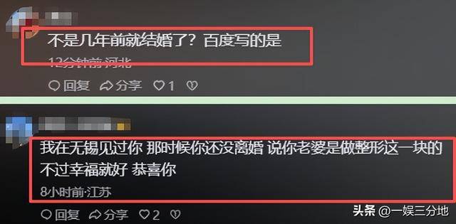 不过,网友爆料道:“在无锡见过田重,那会没说离婚,而前妻在做整形行业。”