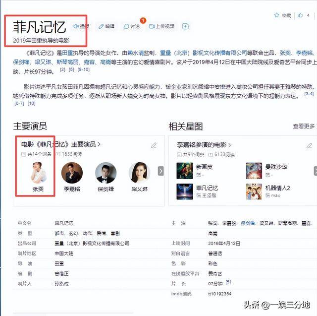 她出演过田重自己执导的电影《菲凡记忆》,是女主角。