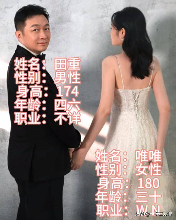 最重要的是,田重身高174,而唯唯有180了,婚纱照在一个水平线,他脚底估计踩方块了。