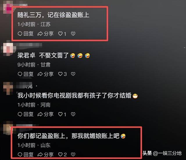 网友调侃道,我上礼三万,记在徐盈盈的头上,或者记在武媚娘的头上。