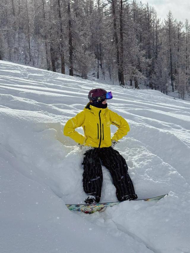 仔细看视频会发现,他们去的这个滑雪场人特别少,背景里只有几棵挂满积雪的松树。