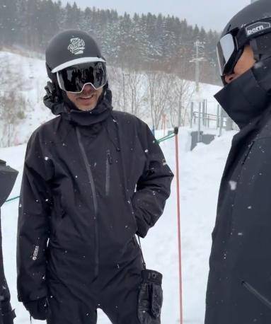 有媒体扒出他12月17号还在松花湖滑雪场教工作人员玩双板,穿件红色滑雪服特别显眼。
