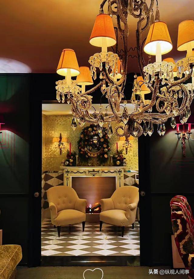 再看整个客厅的布局,更是让人咋舌 —— 挑高空间里悬挂着一盏巨型水晶吊灯,灯光洒在米白色的大理石地面上,反射出耀眼的光芒。