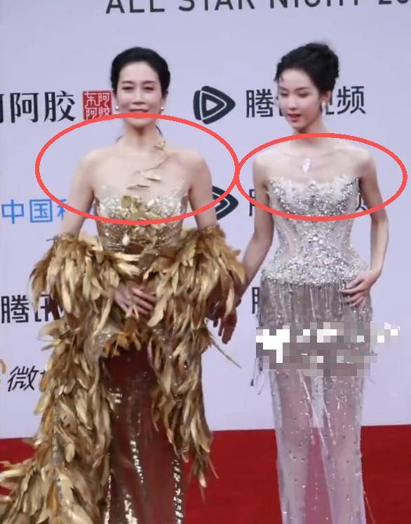 参加完金鹅荣誉红毯的第二天,陈都灵又走上了荣誉之夜盛典,一旁的温峥嵘明明已经很瘦了,可陈都灵站在她的身边,硬是小了一圈,而且胸部、胳膊、锁骨等各个地方的骨头,也因身材太瘦而凸显了出来。