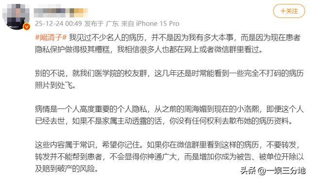 医院做出有违道德的事普通人拦不住,现在更多的人还是关心阚清子的状态,她社交平台的评论区下面已经炸锅了,都在关心她,希望这件事事假的。