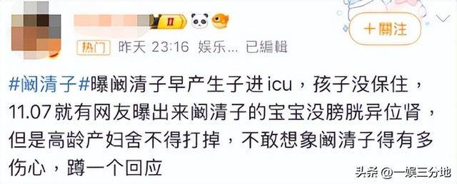 点进去后才知道,原来是有人爆料,阚清子的孩子没有足月就早产了,是个女孩。