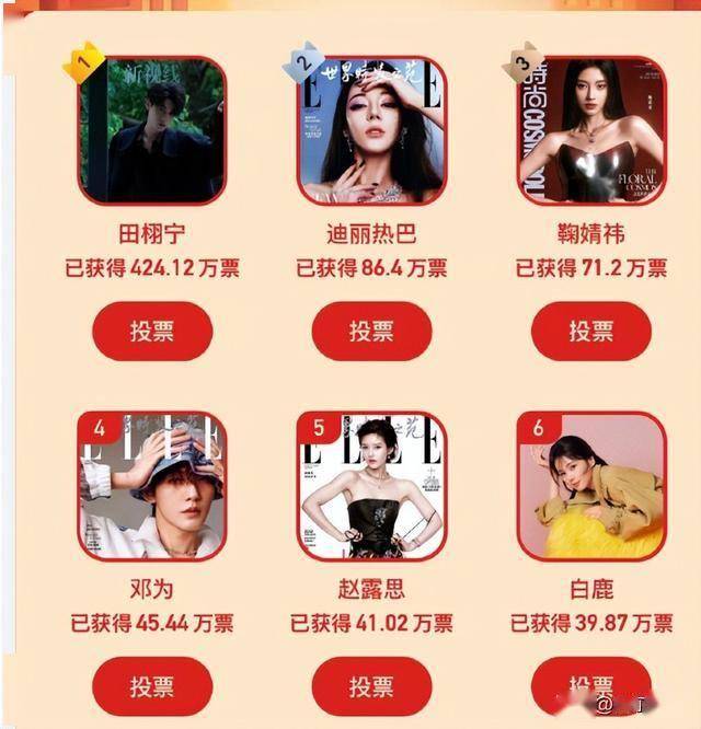 首轮投票那叫一个火热,迪丽热巴直接以94万多票甩开别人,粉丝们在评论区喊得欢,“热巴姐今年四部剧呢,谁比得过!”