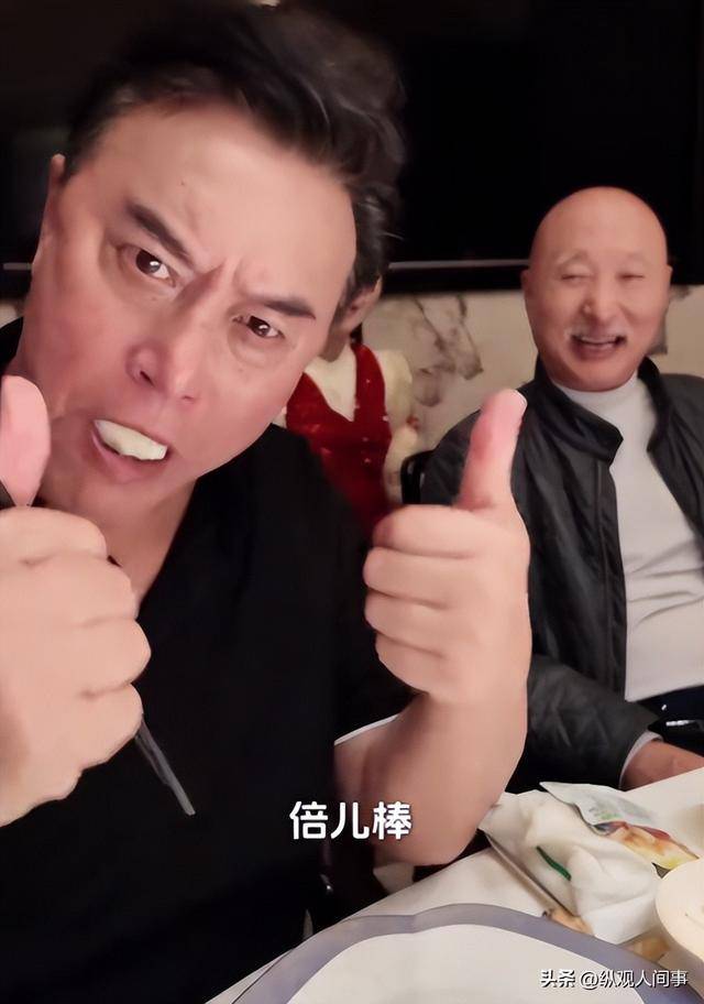 张山平时低调得很,这次现身,身上就穿了一件黑色短袖,头发花白,脸上斑点点点,却一点不遮掩,反而在吃烤鸭时玩起了花样 ——