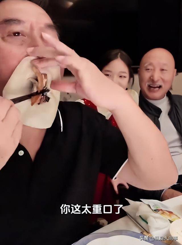 别人卷饼加葱丝,他直接把饼皮塞嘴里,再咬一口鸭肉,逗得陈佩斯直呼 “山东吃法”,全家笑成一团。