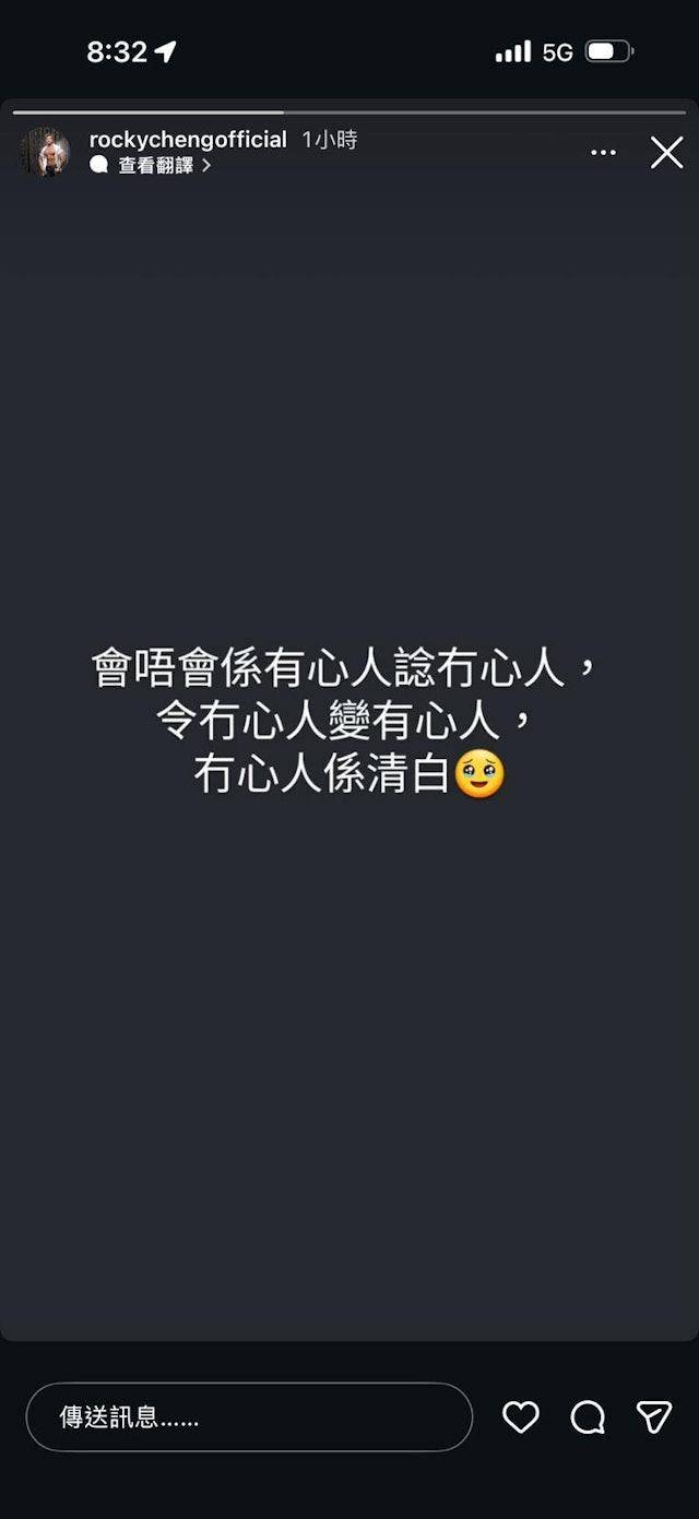 而对于崔碧珈的决绝表态,另一边的郑健乐疑似在社交平台上写下回应,他称:会不会是有心人想无心人,令无心人变有心人,无心人是清白。