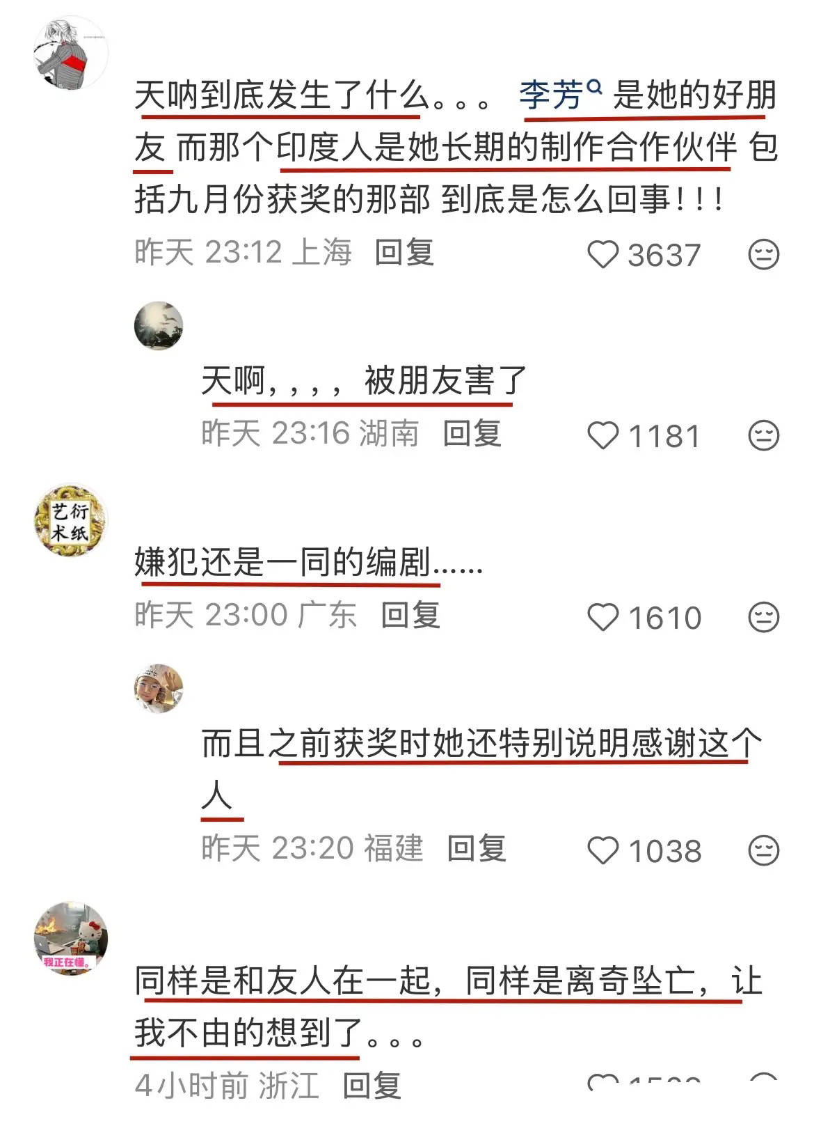 这样算赖宇晴和LIFANG的关系顶多就是同事、或者朋友,真正和她熟悉的印度男贾特拉。不过贾特拉也是一名导演,没必要铤而走险吧。