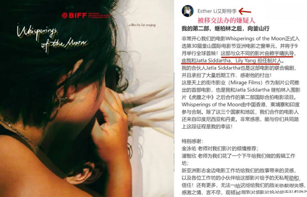 赖宇晴是很温暖的女孩子,她还在电影节上感谢了2位合伙人。LIFANG是贾特拉的长期制片人,赖宇晴应该是先认识了贾特拉、然后又认识了LIFANG。
