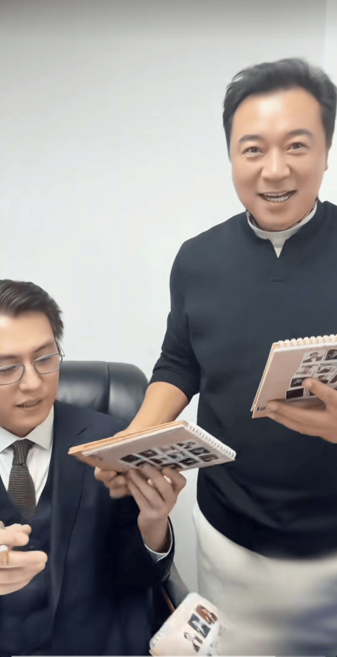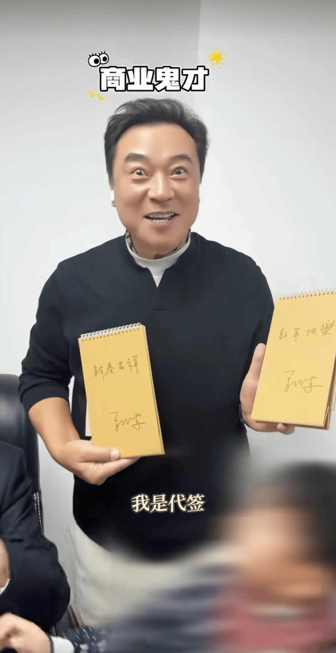 手握这份特殊的新年福利,张晞临径直来到靳东的办公室,恳请对方签名,打算给两个儿子各送一本。靳东爽快应允,大笔一挥分别写下“新春快乐”和“新春吉祥”,并郑重签下自己的名字。拿到签名台历的张晞临喜不自胜,还开玩笑说自己这是“代签”,出去就能卖钱,氛围十分轻松。