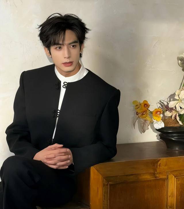 他穿着深灰色暗纹西装,内搭白色棉质衬衫,没系领带,领口随意解开两颗扣子,多了几分随性和慵懒。
