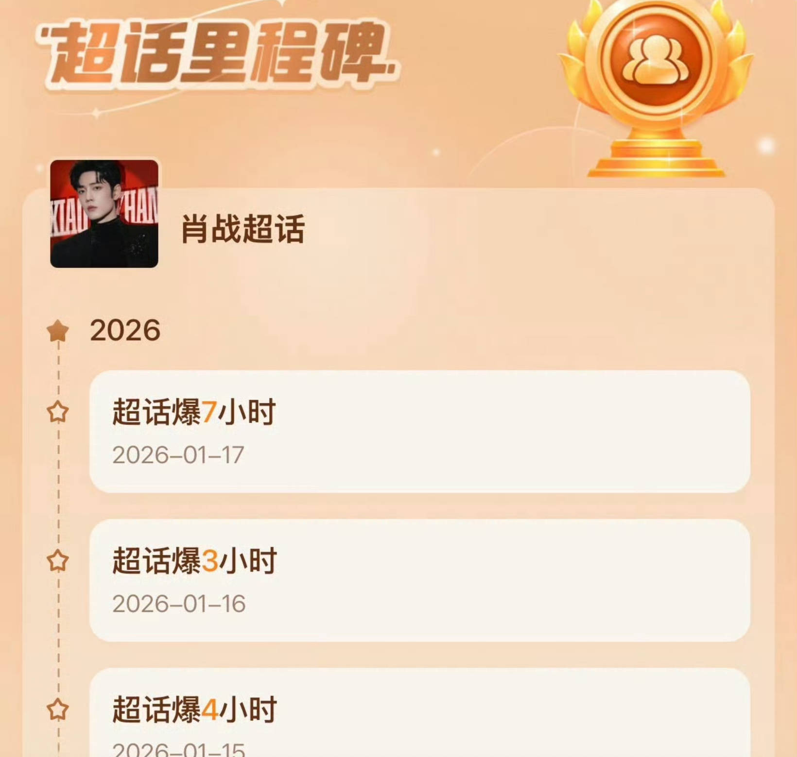 2026年1月17日的微博服务器,大概是被肖战粉丝“小飞侠”们按在地上摩擦的一天。从早8点到下午3点,肖战超话的“爆”字图标就没暗过,硬生生创下连续7小时“爆”状态的平台纪录——单日发帖30.6万条、互动量592万次、热力值9741万,74.2万人在线签到打卡,这数据堪比一个小型城市的日活,内娱圈直接看呆了:“这哪是超话,分明是线上春运现场!”