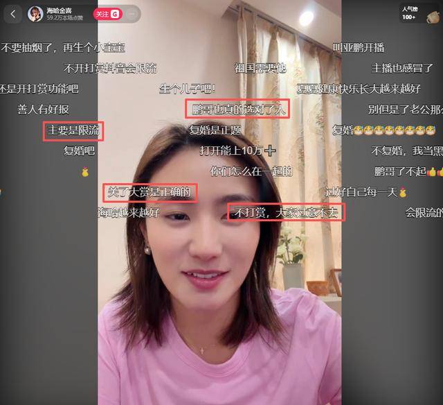 这场直播里,海哈金喜没提任何带货的事,甚至连礼物打赏功能都给关了,说话间满是对李亚鹏的关心。