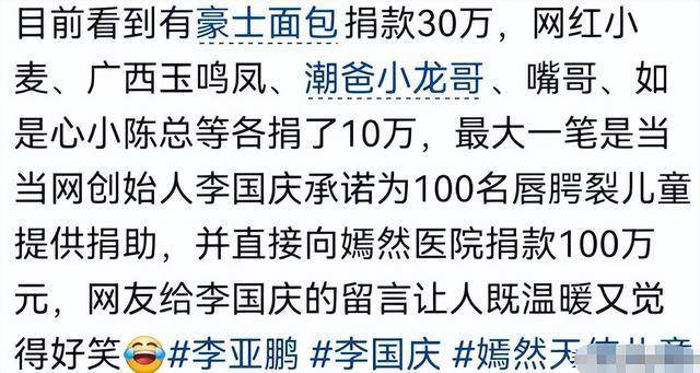 当当网创始人李国庆率先捐出一百万,并公开表态说自己很佩服李亚鹏做公益的行为。