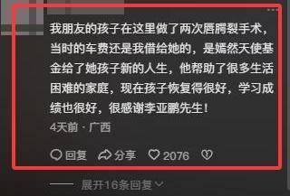 李亚鹏先生这些年救助了上万人,别人是越扒越黑,他却是越扒越亮。