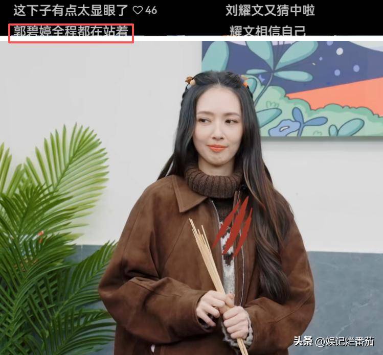 观众也敏锐地发现,郭碧婷是全场唯一没蹲过,一直站着的嘉宾。