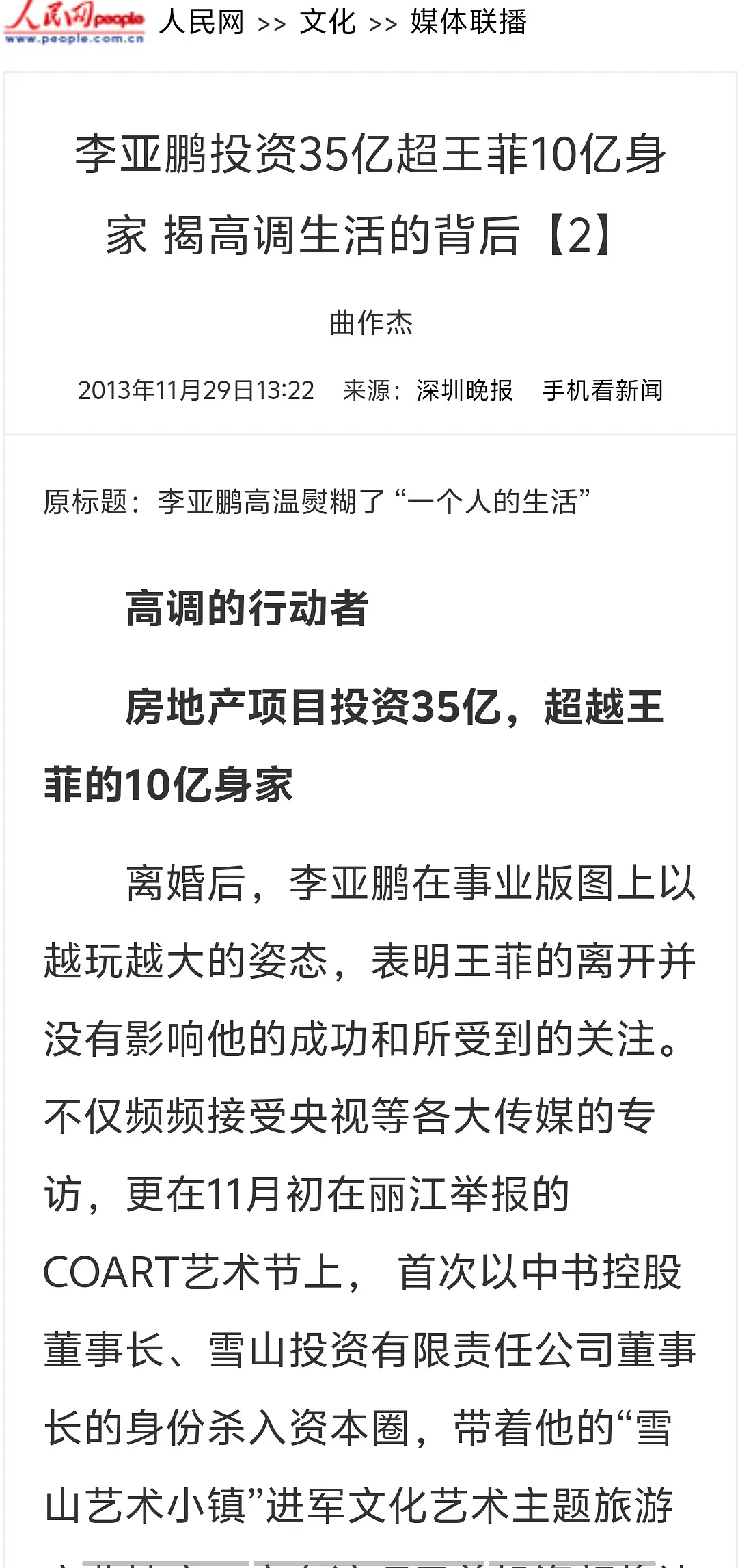 这不过是李亚鹏商业生涯的缩影。从“雪山艺术小镇”的宏图到屡屡失败的投资,他的故事里充满了理想主义的激情,却唯独缺少了实现理想所必需的审慎、专业与务实。
