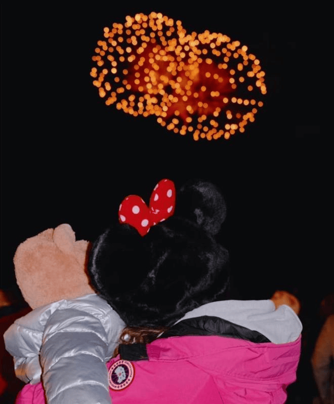 迪士尼烟花秀有句著名标语:"点亮心中奇梦"。对曾经的鬼鬼而言,这是少女情怀的仪式感;如今,这场烟花承载了更复杂的含义——它照亮的不再只是她个人的童话梦,更是为女儿点亮的第一个梦幻之夜。从"只需要对自己负责的快乐少女",到"规划行程、准备婴儿用品、随时关注孩子状态"的妈妈,两种身份在她身上奇妙融合。
