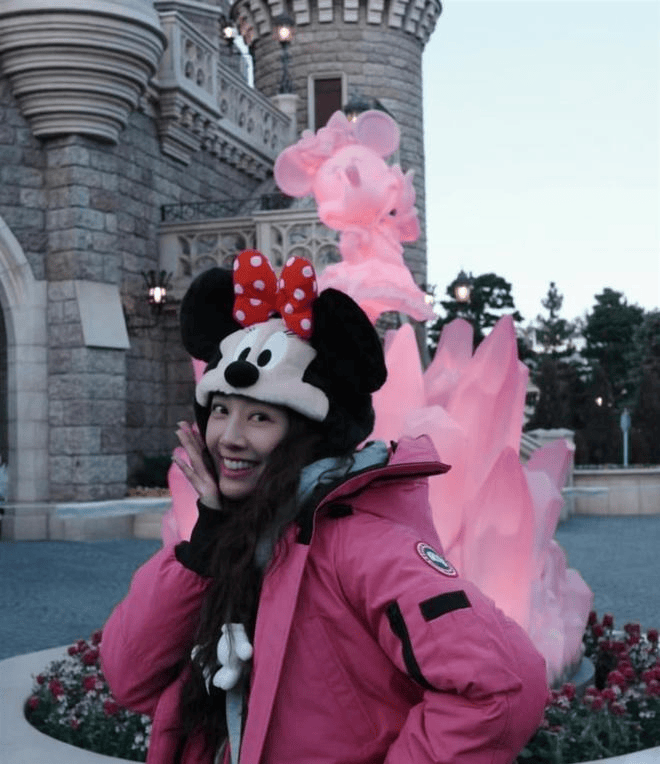 熟悉鬼鬼的粉丝都知道,她是迪士尼的忠实拥趸,几乎年年打卡圆梦。但此次出行意义截然不同——身边多了一个刚满周岁的小小旅伴。从白天到夜晚,她在旋转木马前托腮自拍,笑容灿烂如园区阳光;华灯初上时,又抱着裹成"小粽子"的女儿占据最佳观景位。当烟花在奇幻童话城堡上空绽放,母女俩共同仰望星空的背影,成为这个冬日最温暖的画面。