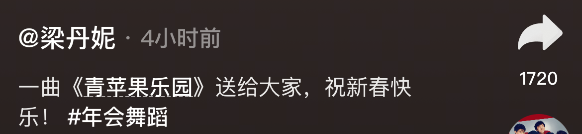 2月12号,冯远征妻子梁丹妮于视频账号上分享了一段更人叹服的“团拜会”画面,并热情地说道:一曲《青苹果乐园》送给大家,祝新春快乐。