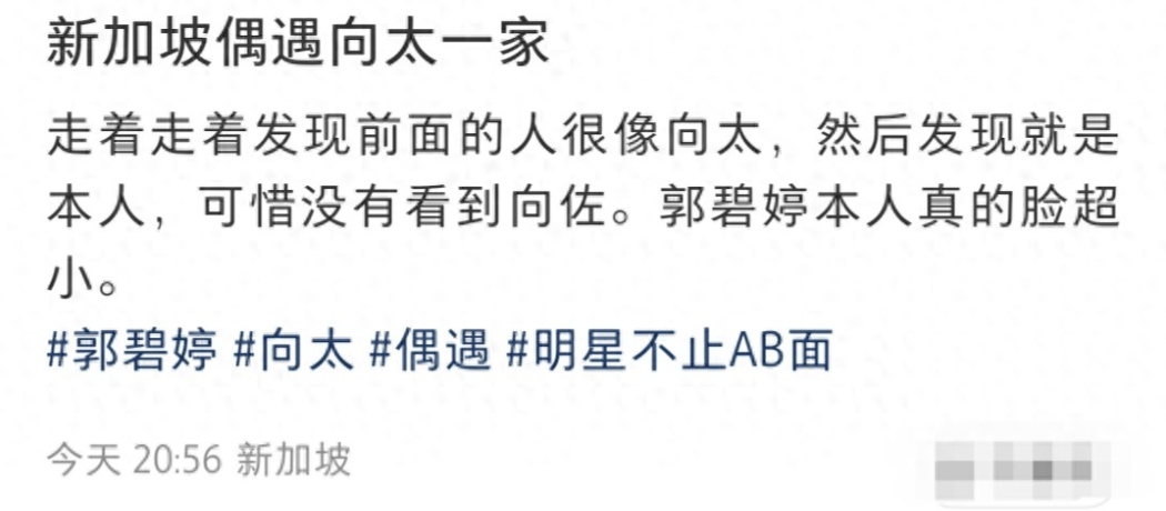 在2月12日,郭爸爸还晒出女儿打扫干净家里的房子,就连对联都贴上来,把家里的新年气氛弄得非常浓愈才去的新加坡,还有网友偶遇郭碧婷和公婆现身机场的画面,没想到私下还都是这么的随和,向太和向华强背着包,郭碧婷拿的更多一些,剩下的才是保姆阿姨背着。