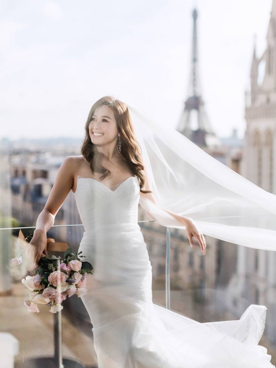 在娱乐圈,这种操作,真的不多见。照片里,她一连换上多套婚纱,在巴黎铁塔和欧式古典建筑前取景。抹胸鱼尾款大秀香肩,长袖蕾丝款仙气十足,身材紧致、线条流畅,完全不像43岁。网友纷纷留言:这状态,说是30岁都有人信。但比起“冻龄美貌”,大家更关心的只有一个问题:老公是谁?