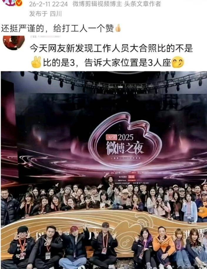 还有微博之夜合照上工作人员比耶的动作,比出来一个3的手势,以及倪妮和辛芷蕾的谈话,也引起了不小的联想。