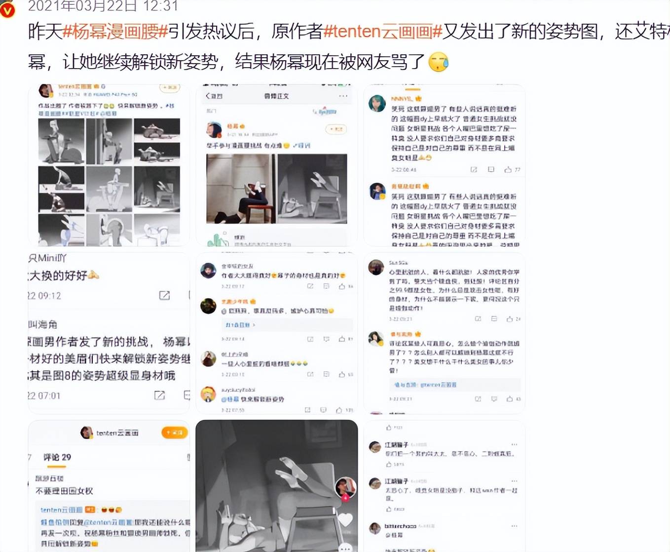 在网上最反对身材焦虑的那几年,她在社交平台模仿漫画里的姿势,大秀腰线。