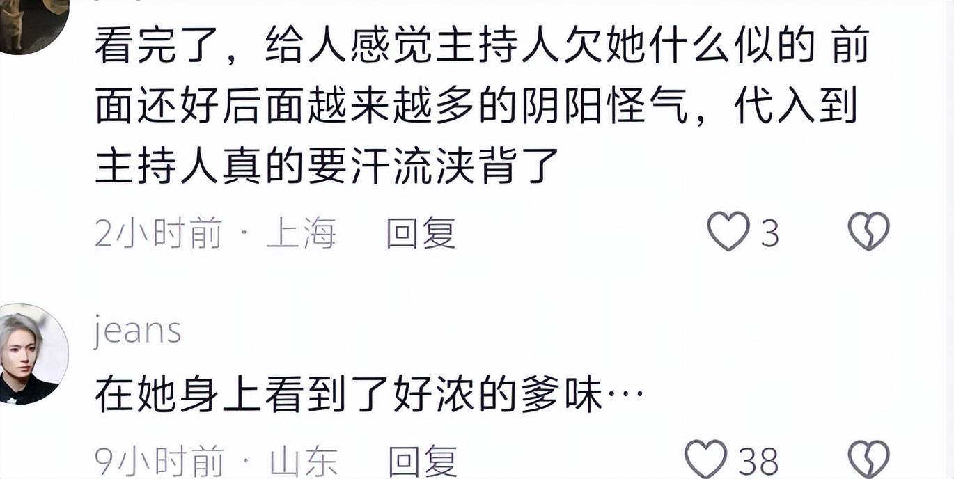 联想到她跟主持人互动时那冷冷的态度,再看看她这次,网友更是觉得她双标。