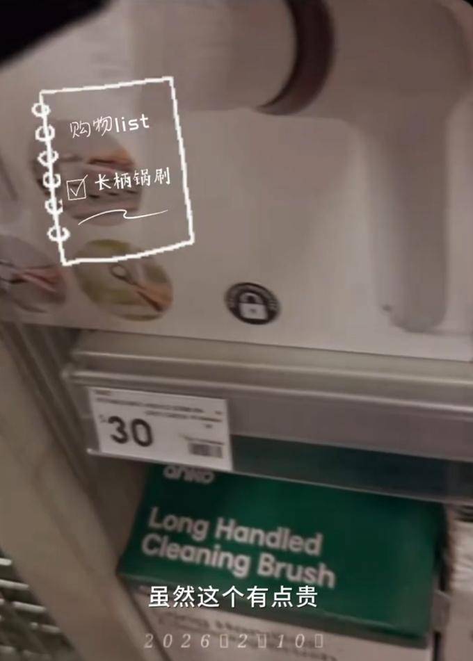 在视频 中,张柏芝 购买的 物品都是 日常生活用品,她拿起一个30澳元的长柄锅刷, 表示价格稍高, 稍后会 检查是否有折扣,就像普通 人一样会精打细算。