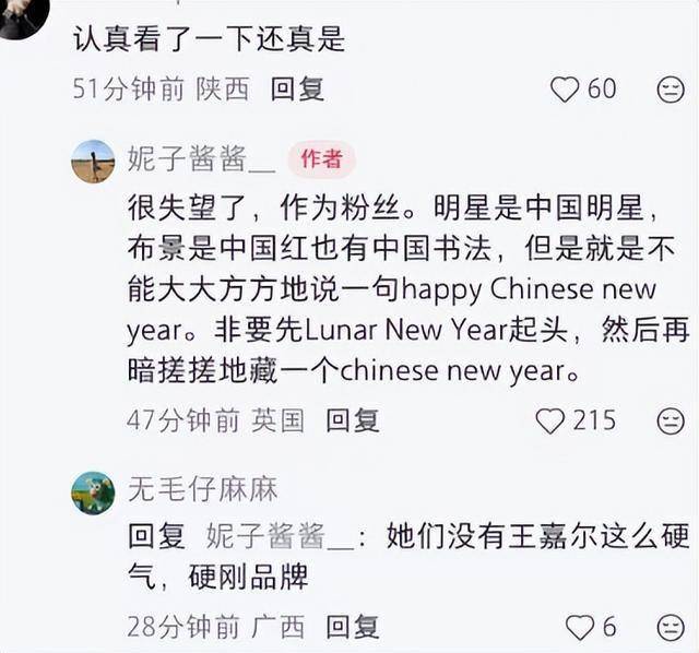 她哪怕是发照片到外网社交平台上庆祝新年,也要夹带一句庆祝农历新年的祝福语。