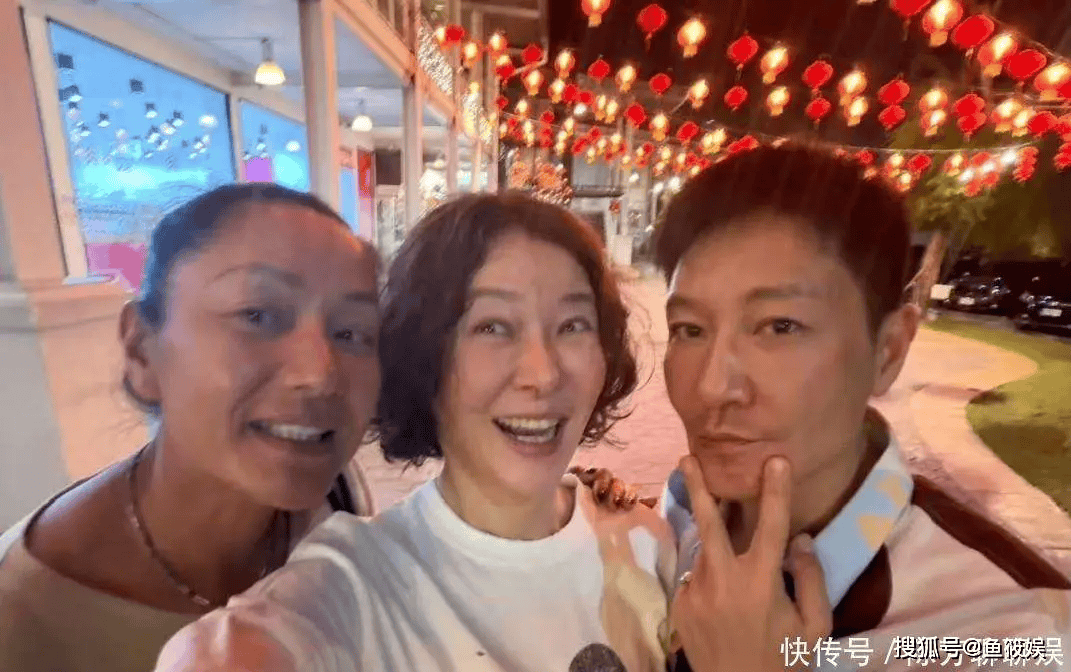 照片里的几人,彻底卸下了明星的光环,穿搭随意、神态舒展,没有精致到发丝的妆容,没有刻意摆拍的姿态,满是岁月沉淀后的从容与惬意。柯蓝身着简单的白色T恤,搭配蓬松自然的卷发,眉眼舒展、笑容明媚,肌肤状态通透细腻,丝毫看不出已是53岁的年纪,整个人精神焕发,自带一种随性洒脱的气场;身旁的瞿颖穿着一件粉色中式上衣,领口的盘扣设计点缀出中式韵味,长发随意挽起,眉眼温柔、气质大气,褪去了模特的凌厉,多了几分中年女性的温婉;一旁的李宗翰则彻底放飞自我,全程搞怪耍宝,时而对着镜头比耶,时而托着腮做呆萌状,时而凑到两人身边扮鬼脸,完全打破了平时荧屏上沉稳严肃的精英形象,反差感十足。