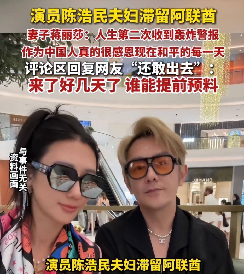 紧接着,陈浩民的老婆蒋丽莎也发文了,她更吓人,人在阿布扎比,手机直接收到了政府发的轰炸警报。那可不是什么垃圾短信,是让你立刻找最近的安全建筑避难的救命通知。她配文说这是人生第二次收到这种警报,后面跟着一串感叹号。隔着屏幕你都能感觉到她打字的手在抖,那种恐惧是会传染的。什么明星光环,什么百万粉丝,在那一刻全都没用,他们就是一群想活命、想回家的普通人。